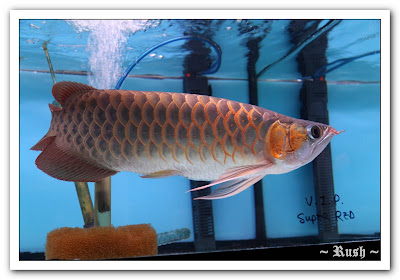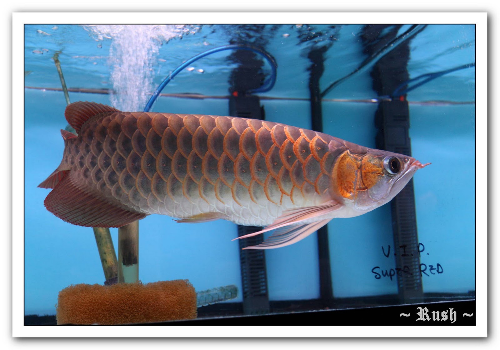 Можно встретить и вот таких шикарных представителей элитных видов, как эта красная арована. Надпись VIP на стекле указывает, что цену следует обсуждать непосредственно с менеджером.